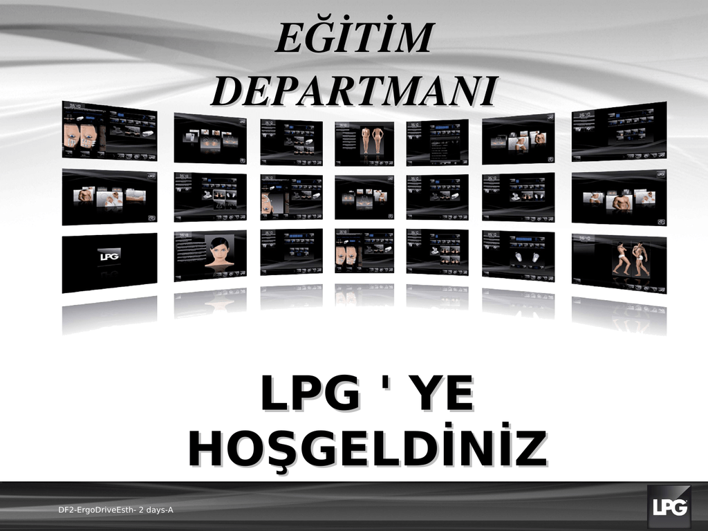 EĞİTİM DEPARTMANI LPG ' YE HOŞGELDİNİZ DF1ErgodriveMedA projet DF2-ErgoDriveEsth- 2 days-A İKİ GÜNLÜK EĞİTİM Endermologie Lipomassage EndermoLift Hücresel uyarımda Yeni jenerasyon Cellu M6 DF1ErgodriveMedA projet DF2-ErgoDriveEsth- 2 days-A LPG şirketi Louis Paul Guitay tarafından 1986 yılında kurulan bir Fransız şirketi Fransa ' da : Valence (genel yönetim , eğitim , üretim , araştırma & geliştirme ) Sophia Antipolis (ihracat , eğitim,klinik araştırma , pazarlama , komünikasyon) Levallois (eğitim), Paris (show room). 50 distribütör aracılığıyla 100 ülkede uluslararası alanda temsil edilmekte LPG başlangıç eğitimi: bir sonraki günkü işlemler için ekipmanın nasıl kullanıldığını öğrenme DF1ErgodriveMedA projet DF2-ErgoDriveEsth- 2 days-A Katılımcıların tanıtımı • Daha önceden LPG kullandınız mı ? Ne zamandan beri ? • Hangi cihaza sahipsiniz ? – Cellu M6 Endermolab, Cellu M6 Ergodrive DF1ErgodriveMedA projet DF2-ErgoDriveEsth- 2 days-A Eğitim 1st ÖÖ: TEMELLER tutuş Eğitim takımının tanıtımı Endermologie, Lipomassage, EndermoLift tanımları Mekanotransduksiyon , LPG teknolojisinin hedefleri : Adiposit & Fibroblast LPG teknolojileri Ekipman tutuşu Temel manevraların pratiği : Roll Up Major, Roll In 1st ÖS : ROLL Roll out ve Roll up minör ile temel manevraların pratiği Lipo evaluasyondeğerlendirme Lipo Foto 2nd ÖÖ: ROLL Değerlendirme pratiği Soru&Cevap + gözden geçirme Lipomassage seans pratiği Lipomassage protokolleri pratiği 2nd ÖS : LIFT EndermoLift müşteri profili & değerlendirme EndermoLift seans pratiği Selfevaluationkendini değerlendirme Eğitim değerlendirmesi DF1ErgodriveMedA projet DF2-ErgoDriveEsth- 2 days-A Eğitim hedefleri Endermologie nin nasıl açıklanacağını öğrenme Uygulamalarını öğrenme : Lipomassage EndermoLift Ekipmanlarını öğrenme Hasta profili çıkarmayı öğrenme Lipomassage & EndermoLift ile nasıl pratik yapılacağını öğrenme Eğitim programının nasıl yapılacağını öğrenme ? DF1ErgodriveMedA projet DF2-ErgoDriveEsth- 2 days-A LPG bakımlarının nasıl önerileceğini öğrenme Endermologie : Tanım ® Endermologie® bağ doku ve kas dokunun mekanik uyarımlarla uyarıldığı çok özel teknikleri içinde toplar. LPG teknolojisi ( Cellu M6 serisi ) non invasif tekniklerdir ve %100 doğaldır. 1986 dan beri Fransız teknolojisi markası Lipomassage & EndermoLift bu mekanik uygulama uzmanlığından doğmuştur. DF1ErgodriveMedA projet DF2-ErgoDriveEsth- 2 days-A Etki prensibi: LPG hücresel uyarım + Enhance exchanges + Kollajen & elastin üretimi + Yağ eritilmesi + Drenaj DF1ErgodriveMedA projet DF2-ErgoDriveEsth- 2 days-A Derinin mekanik uyarımıyla hücresel aktiviteyi arttırır. Etki prensibi: MEKANOTRANSDÜKSİYON DIŞ GERİLİM (basınç,sürtünme,gerilim) EPIDERMIS Mekanik uyaranların bağ doku içinde biyolojik cevap olarak transdüksiyonu FIBROBLAST DERMIS İÇ GERİLİM (Dermis izometrkgerilimi, fibroblastların kasılıp büzülmesi ) Pr. Philippe HUMBERT - Laboratoire d’Ingénierie et de Biologie Cutanées, EA 3183, INSERM U 645, UFR Médecine-Pharmacie DF1ErgodriveMedA projet DF2-ErgoDriveEsth- 2 days-A Endermologie : Önlemler ® Mutlak Kontrendikasyonlar :Manuel masaj ile aynı. Vücut :Kanser, kan incelticiler, kan hastalıkları , enfeksiyon , iltihaplı faz , flebit Herhangi bir şüphe durumunda hastanın doktoruyla iletişime geçilir ( örn. kanser) Yüz : herpes, vitiligo, iltihaplı ya da enfeksiyonlu akne Bakımdan iyi sonuç alınamayacak kişiler Örn :uzun süreli kortikoid tedavisi görenler , hipotiroid , diabet Bölgesel vakalar : Hamilelik > Lipomasaj protokolü yapılmaz fakat drenaj yapılabilir Ameliyat sonrası 6 aydan az süre içinde > cerrahın önerisi alınır (ör : lipoaspirasyon) Lokal Kontrendikasyonlar Hamilelik Rozasea Varikoz damarlar ve örümcek damarlanmalar Lezyon Yeni oluşmuş yara izleri , hipertrofik ya da keloid skarlar Karın ya da kasık fıtığı Lipom DF1ErgodriveMedA projet DF2-ErgoDriveEsth- 2 days-A Damar cerrahisi ( ilk 2 ay boyunca) Estetik ya da plastik cerrahi operasyonlar ( İlk 6 ay boyunca Kabarık benler Dolgu enjeksiyonları Botoks : 2 hafta LPG Teknolojisinin Hedefleri • Epidermis • Dermis (fibroblastlar) • Hipodermis (adipositler) Yüzeysel yağ • Derin yağ DF1ErgodriveMedA projet DF2-ErgoDriveEsth- 2 days-A Fibroblast Kollajen & Elastin Dolaşım & Lenfatik damarlar Adiposit Septa Neden Lipomassage ? 1aylık Cellu M6 bakımı : mekanik uyarımla adipositlerde nöro hormonal aktivite Monteux C., Lafontan M. 12 seanslık mekanik masaj tekniğinin femoral adipoz dokudaki lipolitik aktivite üzerine etkisinin mikrodiyaliz tekniğiyle ölçümü Kozmetik Dermatoloji Dergisi Alfa 2 RESEPTÖR 1 Lipolizi durdurur ŞEKERLER 3 LIPOLiz (FAT REDUCTION) 4 YAĞ ASİTLERİNİN BOŞALTILMASI 5 Adiposit 2 YAĞLAR (kolesterol içerirl) +Beta REsEPTöR Lipolizi tetikler Beta reseptörlerinin uyarımı DF1ErgodriveMedA projet DF2-ErgoDriveEsth- 2 days-A KASLARA = ENERJİ Neden Endermolift? 1 aylık Cellu M6:Endermolift bakımıyla arttırılmış klinik ve metabolik etkileri Prof. Jean Revuz. ÜRETİMİ 1 ZAMAN 2 U.V KOLLAJEN & ELASTIN YIKIMI 3 4 MEKANİK GERİLİM Dermis Fibroblast MEKANOTRANSDÜKSİYON LPG DF1ErgodriveMedA projet DF2-ErgoDriveEsth- 2 days-A KOLLAJEN & ELASTIN SENTEZİ 5 KIRIŞIKLIKLAR , GEVŞEME, IŞILTININ KAYBI KOLLAJEN & ELASTIN LPG Mekano Transdüksiyon DIŞ MEKANİK ETKİ, kontrollü Uyarlanmış hücresel etki Fibroblast DF1ErgodriveMedA projet DF2-ErgoDriveEsth- 2 days-A Adiposit Yeni Yüksek-teknoloji arayüz YENİ PROTOKOLLER Tam menü GÜZELLİK Yüz GÜZELLİK Vücut DF1ErgodriveMedA projet DF2-ErgoDriveEsth- 2 days-A LPG tekniklerinin geliştirilmesi : LPG teklifleri çeşitlendi Özelleştirilmiş bakımlar sunar Çok daha uyumlu LPG ENTEGRE SANAL KOÇ Entegre edilmiş rehber sayesinde hedefe yönelik protokoller Kullanıcıya da