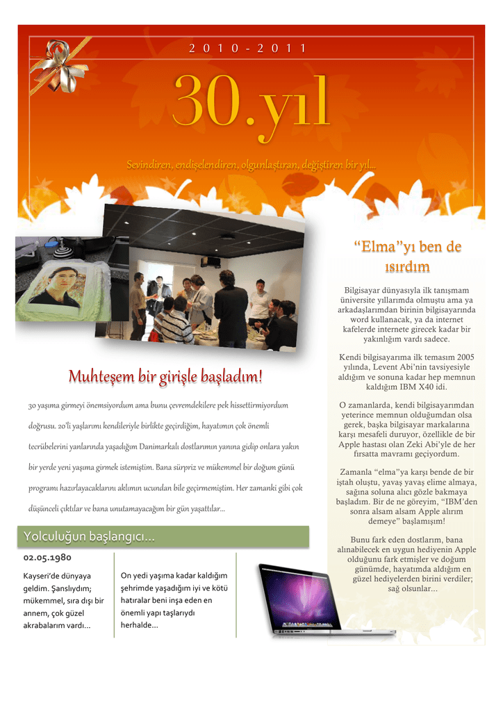 2 0 1 0 - 2 0 1 1 30.yıl !"#$%&$'"%()"%&$*"+"%&$'"%(),+-.%+/*01'/%()&"2$*0$'"%)3$')41+5) “Elma”yı ben de ısırdım Bilgisayar dünyasıyla ilk tanı!mam üniversite yıllarımda olmu!tu ama ya arkada!larımdan birinin bilgisayarında word kullanacak, ya da internet kafelerde internete girecek kadar bir yakınlı"ım vardı sadece. 6.70"*"8)3$')-$'$*+")3/*+/&189) :;)4/*18/)-$'8"4$)<%"8=$4,'&.8)/8/)3.%.)>"#'"8&"?$+"'")@"?)7$=="00$'8$4,'&.8) &,2'.=.A)B;C+$)4/*+/'181)?"%&$+"'$4+")3$'+$?0")-">$'&$2$8()7/4/0181%)>,?)<%"8+$) 0"D'E3"+"'$%$)4/%+/'1%&/)4/*/&1218)F/%$8/'?/+1)&,=0+/'181%)4/%1%/)-$&$@),%+/'/)4/?1%) 3$')4"'&")4"%$)4/*18/)-$'8"?)$=0"8$*0$8A)G/%/)=E'@'$H)#")8E?"88"+)3$')&,2.8)-E%E) @',-'/81)7/H1'+/4/D/?+/'1%1)/?+181%).D.%&/%)3$+")-">$'8"8$*0$8A)I"')H/8/%?$)-$3$)>,?) &E*E%D"+$)>1?01+/')#")3/%/).%.0/8/4/D/218)3$')-E%)4/*/001+/'AAA) !"#$%#%&%'()*+#*',-$-.( !"#!$#%&'!( =*0>163?21(2;'0*0*( ,1#234@(A*'>#-02-4B( 4;51441#C(>-6*(2-+-()36( *''14C(D"5(,;E1#( *56*)*#*6-4(8*62-.( /'(0123(0*+-4*(5*2*6(5*#2-&-4( +1763421(0*+*2-&-4(303(81(59:;( 7*:-6*#*6()1'3(3'+*(121'(1'( 9'14#3(0*<-(:*+#*6-02-( 7167*#21.( Kendi bilgisayarıma ilk temasım 2005 yılında, Levent Abi’nin tavsiyesiyle aldı"ım ve sonuna kadar hep memnun kaldı"ım IBM X40 idi. O zamanlarda, kendi bilgisayarımdan yeterince memnun oldu"umdan olsa gerek, ba!ka bilgisayar markalarına kar!ı mesafeli duruyor, özellikle de bir Apple hastası olan Zeki Abi’yle de her fırsatta mavramı geçiyordum. Zamanla “elma”ya kar!ı bende de bir i!tah olu!tu, yava! yava! elime almaya, sa"ına soluna alıcı gözle bakmaya ba!ladım. Bir de ne göreyim, “IBM’den sonra alsam alsam Apple alırım demeye” ba!lamı!ım! Bunu fark eden dostlarım, bana alınabilecek en uygun hediyenin Apple oldu"unu fark etmi!ler ve do"um günümde, hayatımda aldı"ım en güzel hediyelerden birini verdiler; sa" olsunlar... 30. YIL 2010 - 2011 Do!um g"n"m )*+,-.(/010.(2313(/4567,71(/016089(67:41( ;0541<(=8>+:?-1(@38AB>B163A7(C0D10(E3:[email protected]:3( .0>37<(278(8-C(C35714(/78.4:4(C3DB8531B:+86-.( 3>5B163F( F>4*3#(G)3?'3'C(HI153(G)3?#16(81()36J353(*3#10#1()36#35:1(2"&%4( ,;';';E(81>3#1>30#1()36(0161(01415(014101(,321#34K( 2141>30#1()36(+10#163'("#2%&%'*(2*36(73>#1634(5-<-62*4*0*( )*+#*4-+:-(*4*(<15(21(:*743'(0*<*4-0"62%4@( L1$1(5*#2-&-4-E(1821'(I153(G)3?'3'()3E(5*#54*2*'C( 1651'21'(D-5-<(183'1(,3::3&3'3(M*65(123'$1(N5%+5%?#*6-4( *6:4*0*()*+#*2-@( G6*)*2*(F>4*3#(G)3?#16#1()36#35:1(,321651'(*>#-'2*()36( 61>:"6*'*(21&3#C()*'*(>;6<63E(0*<4*5(3D3'(7*E-6#-5(0*<:-5#*6-( )36(0161(,3::3&343E3(303$1(*'#*4-+:-4@@@( O*+:*(G0+1(G)#*(81(I153(G)3("#4*5(;E161();:;'( 2">:#*6-4(90#1(E*741:#16#1(,;E1#()36(<6",6*4( 7*E-6#*4-+#*62-(53C("(5*2*6(7"+()36(>;6<63E#1( 5*6+-#*+*$*&-4-(73D(:*743'()3#1(1214123&343(3:36*M( 1:41#3034@(A*+-62-4C(7101$*'#*'2-4C(:*4(*'#*4-0#*( 1#34(*0*&-4()36)363'1(2"#*+:-C(8;$%2%4(7101$*'2*'( :3:614101()*+#*2-(81()1'(4%:#%#%&*()"&%#4%+()36( 7*#21('1(0*<*$*&-'-()3#14101'()36(*2*4("#*6*5()*'*( *06-#*'(>*'2*#0121(":%62%4(5*#2-4.(( P*#"'%'2*'(4*>*(2;E1'3'1C(43>*M36#163'(2*81:3'21'( 01415#163'("6,*'3E*>0"'%'*C(8321"(5#3<#1621'( >90#1'1'(+*65-#*6*C(*'#*:-#*'(7*:-6*#*62*'(0*E-#*'( 21M:161(5*2*6(716(+10()36()*+5*02-.( 2 30. YIL 2010 - 2011 !"#$%&'(')*'+,-.&'(+/-01-2+ E$%#$:'+<%-"+.'8#$1+@<2+25@52+:-4%-(91*-+ 3-"$1-(2-)*-2$+$4%'($"+*56'"'+#$(*$7$"$+ ;-4%-*9A+F""'1$"?+-""'-""'1'+;'"*'"+ *545"*5751+8'+-(&92+-:(9%*9791+&-2*$(*'+;$(+.<(="+ ;-D.'*'(2'"?+G;=+@<>=2+@<2+.<(=+.<(=:<(H+ <%1-:->-79"-+'1$"+<%*=7=1+:9%?+8-2&$1$+&-1-1'"+ *$:'('2+4$2I:'&+'&&$7$"$?+-""'-""'1$"+*'+2969"9?+ *$%+'7$&$1$"'+-:9(1-:-+2-(-(+8'(*$1+8'+3-">-):-+ G@<2+.<(-"+@<>=2+$:$*$(+29691H+*$:'('2+&'.'%%$+ @-%941-:-+;-4%-*91A+ '&&$7$+2-(%9+294+#5"5"5+D-%-+D-&9(%-(91J+ B%2'*'2$+5"$8'(.$&'%'($"+;'%$(%'*$7$+4-(&%-(9"+;'"$1+ E$%#$:'+<%-"+;=+$%#$+;'"$+5"$8'(.$&'+D-:-&9"-+2-*-(+ *=(=1=1*-2$+;$($+$@$"+1-.&'(+:-01-:-+0'2+15.-$&+ #C&5(*5+-1-+:$"'+*'+-(-*97919+&-1+;=%-1-*9791+ <%1-*979"9+-"%-*9791+8-2$&+*'+C7('"$1+D-:-&91-+ D$..$:%'+*-D-+K-6%-.9"9+$.&'*$1A+ !"#$%&'(')*'+&'2(-(+;-4%-1-+2<"=.="*-+$4:'($1%'+ ;$(%$2&'+2-(-(+-%*92+8'+&-.9+&-(-79+&<0%-:90+!"#$%&'('):'+ 3-"$1-(2-):-+#$*$4$1$"+$%2+#5"5"*'"+$&$;-('"+ *<7(=?+*$%+'7$&$1$+8'+-(*9"*-"+1-.&'(+$@$"+:<%-+ -2%91*-+D'0+1-.&'(+L:52.'2+%$.-".M+'7$&$1$+-%1-2+ 2<:=%*=1A+ 8-(*9+-1-+<(-*-2$+$4%'($1$"+:<7="%=7="*-"+ *<%-:9+=6="+;$(+.5('+;=+D-:-%$1'+8-2$&+ E$(+:9%%92+*$%+'7$&$1$"*'"+.<"(-+*-+E$(1$"#D-1+ -:9(-1-*91A+ B"$8'(.$&'.$)"*'+1-.&'(+'7$&$1$1'+;-4%-*91AAA+ Ö"renim hayatımın en verimli yılıydı “Ne kadar az yol almışım, ne kadar az, yolun başındaymışım meğer...” !lgi alanlarımla alakalı sorularıma Türkçe ve Arapça yazılmı" kitapları okuyarak cevaplar bulmaya hep çalı"mı"tım ama Batılı yazar ve bilim adamlarının eserlerini kendi yazdıkları dilde okumak ve anlamaktan mahrum olmak benim için her zaman büyük bir eksiklikti. Bu konuda hissetti#im açlıkla, üniversitedeki hocalarımın kalitesi birle"ince bu yıl benim için bilgiyi kana kana içti#im sıra dı"ı bir yıl oldu. Fakat bir taraftan çok olumlu olan bu durum, di#er taraftan "öyle bir sonuç do#urdu; Ne kadar cahil oldu#umu, daha gidecek ne kadar da uzun bir yolum oldu#unu fark ettim ve Küçü#üm "arkısının sözleri aklımdan çıkmamaya ba"ladı…. Sezen Aksu 3 30. YIL 2010 - 2011 Tajdid (Renewal) - A Critical study of the term in Islamic thought with special reference to al-Ghazali and Muhammad ‘Abduh ( !"#$%&'()*+,&-%(&./*0(#1*23&45&6*#"*/7%$",&89:8;:<8=8&& `1Z1$:3',(*#31'(321*>(*'2($%>:"4>(S73$7(*61(*,*3'>:(Q>#*43$( 8*#%1>(*'2(<63'$3<#1>(3>(*'":716($"44"'(>%)Z1$:("M(%#0$!$( 4"8141':>@(R73>(61Z1$:3"'(34<#31>(61*MM364*:3"'("M(:71( *%:71':3$3:0("M(:71(Q>#*43$(41>>*,1@(a"S1816C(<6":1$:3',(:71( Q>#*43$(41>>*,1(4*0()1(*$731812(3'(23MM161':(S*0>C()0( 3':1##1$:%*#(*'2(<"#3:3$*#(>:6%,,#1(M"6(1b*4<#1C(21<1'23',("'( S7161(:71(:761*:>($"41(M6"4@(G#JL7*E*#3(*'2(Q)'(R*04300*( *61(:71()1>:J5'"S'(>$7"#*6>(S7"(>:6%,,#12(:"(>*81(:71(<%63:0( "M(:71(Q>#*43$(41>>*,1@(