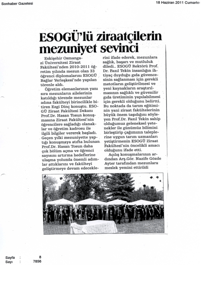 Sonhaber Gazetesi - Ziraat Fakültesi