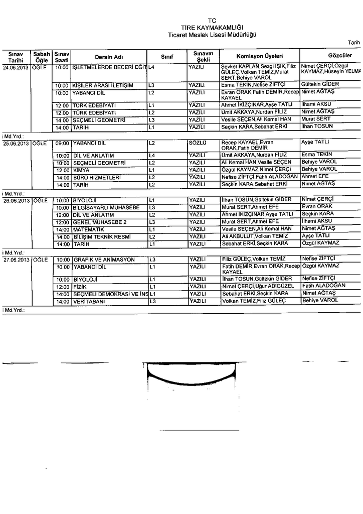 Sınav Genel Programı - Tire İsa Bey Mesleki ve Teknik Anadolu Lisesi