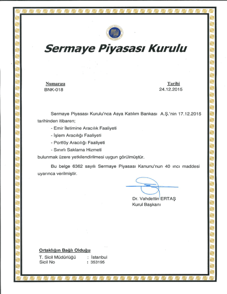 SPK Yetki Belgesi