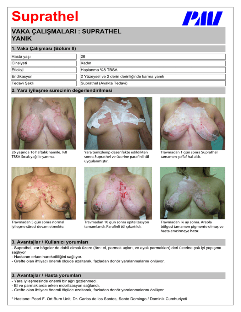6XSUDWKHO 9$.$d$/,ù0$/$5,6835$7+(/ <$1,. 9DNDdDOÕúPDVÕ%|OP,, +DVWD\DúÕ &LQVL\HWL .DGÕQ (WLRORML +DúODQPD7%6$ (QGLNDV\RQ YüzeyselYH derinGHULQOL÷LQGHNDUPD\DQÕN 7HGDYLùHNOL 6XSUDWKHO$\DNWD7HGDYL <DUDL\LOHúPHVUHFLQLQGH÷HUOHQGLULOPHVL ZBǵOEBIBGUBMLIBNJMF 5#4"4DBLZBǘJMFZBONB :BSBUFNJ[MFOJQEF[FOGFLUFFEJMEJLUFO TPOSB4VQSBUIFMWFà[FSJOFQBSBGJOMJUàM VZHVMBONǵUS 5SBWNBEBOHàOTPOSB4VQSBUIFM UBNBNFOǵFGGBGIBMBME 5SBWNBEBOHàOTPOSBOPSNBM JZJMFǵNFTàSFDJEFWBNFUNFLUF 5SBWNBEBOHàOTPOSBFQJUFMJ[BTZPO UBNBNMBOE1BSBGJOMJUàMÎLBSUME 5SBWNBEBOJLJBZTPOSB"SFPMB CÚMHFTJUBNBNFOQJHNFOUFPMNVǵWF IBTUBFN[JSNFZFIB[S $YDQWDMODU.XOODQÕFÕ\RUXPODUÕ 6XSUDWKHO]RUE|JHOHUGHGDKLOROPDN]HUH|UQHOSDUPDNXoODUÕYHD\DNSDUPDNODUÕGHUL]HULQHoRNL\L\DSÕúPD VD÷OÕ\RU +DVWDQÕQHUNHQKDUHNHWOLOL÷LQLVD÷OÕ\RU *UHIWHRODQLKWL\DFÕ|QHPOL|OoGHD]DOWDUDNID]ODGDQGRQ|U\DUDODQPDODUÕQÕ|QO\RU $YDQWDMODU+DVWD\RUXPODUÕ <DUDL\LOHúPHVLQGH|QHPOLELUD÷UÕJ|]OHQPHGL (OYHSDUPDNODUGDHUNHQPRELOL]DV\RQVD÷ODQGÕ *UHIWHRODQLKWL\DFÕ|QHPOL|OoGHD]DOWDUDNID]ODGDQGRQ|U\DUDODQPDODUÕQÕ|QO\RU +DVWDQHPearl F. Ort Burn Unit, Dr. Carlos de los Santos, Santo Domingo / Dominik Cumhuriyeti