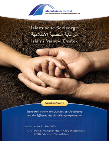 Fachkonferenz Standards sichern die Qualität der Ausbildung und die Effizienz der Ausbildungsorganisation Datum: 6. bis 7. März 2015 Ort: Martin-Niemöller-Haus · Am Eichwaldsfeld 3 61389 Schmitten /Arnoldshain Einführung Standardisierte Ausbildung und Ausbildungsorganisation schafft Qualitätssicherheit und ermöglicht wirtschaftlichen Einsatz aller Ressourcen • In einer gut organisierten Ausbildungseinrichtung werden die Inhalte und Ablaufprozesse standardisiert Dadurch können alle zusammenhängenden Aufgaben unabhängig von Personen und Zeit stets in einer Weise durchgeführt werden, die eine gleichbleibende hohe Qualität sicherstellt. Gleichzeitig wird eine Vereinheitlichung/Vereinfachung erreicht und die Grundlage für die kontinuierliche Verbesserung der Inhalte und Prozesse geschaffen. Standards müssen für alle Beteiligten verständlich mit der sinnvollen Abfolge der Lerninhalte im Unterricht, mit den Grob- und Feinlernzielen, mit der Unterrichtsgestaltung, den notwendig herzustellenden Begleitbedingungen bis hin zu Lernerfolgskontrollen dokumentiert sein. Dies trifft in gleicher Weise auf alle organisatorischen Abläufe, die einer Ausbildung vorausgehen und diese begleiten. Ohne Standardisierung keine kontinuierliche Verbesserung. Offene Verschwendung ist vollständig eliminiert. Verdeckte Verschwendung ist auf ein Minimum reduziert. Die jeweils gegebene Standardisierung ist derzeit „der beste Weg“ der Durchführung. Das Ziel der Fachkonferenz ist es, von den zu erwartenden Entwicklungen in den Seelsorgefachbereichen zu erfahren, Standardisierungsmodelle kennen zu lernen und über ein geeignetes Standardisierungsmodell mit den heutigen und zukünftigen Akteuren in der Seelsorge zu diskutieren. Wir bedanken uns bei den Instituten und Zentren für islamische Theologie der Universitäten Erlangen, Tübingen, Frankfurt und Münster, die bei diesem von der Robert Bosch Stiftung geförderten Projekt mit dem Mannheimer Institut kooperieren, ebenso den Mitgliedern des wissenschaftlichen Beirats, die in der Beratung mit ihrer Fachkompetenzv beitragen. Referentinnen und Referenten Dr. Mohammed Ajouaou Dr. Abdul Nasser Al-Masri Assistenzprofessor für Islamische Theologie, Direktor des Center für Islamische Theologie an der VU Universität Amsterdam, Leiter des Bereichs Spiritual Care/ Seelsorge im Ministerium für Sicherheit und Justiz, Niederlande Buchautor Tahani Al-Barghouthi, MD, MS Rabia Bechari Ärztin, Master in Management in der Gesundheitswirtschaft Vorstandvorsitzende und Mitgründerin des gemeinnützigen Vereines Salam e.V. – Muslimische Seelsorge in Frankfurt a.M. Patientenkoordinatorin für Nicht-EU-Patienten, Agaplesion Frankfurter Diakonie Kliniken Ehrenamtlicher Berater des Schuravorstands in Niedersachsen, Projektleiter, Koordinator und Referent für Seelsorge-Ausbildungskurse im Krankenhaus und in JVAs Krankhaus- und Notfallseelsorgerin Frauenbeauftragte des Deutsch-Islamischen Vereinsverbands Rhein-Main e.V. (DIV) Prof. Dr. Mark Chalil Bodenstein Hanane El Boussadani, M.A. Wissenschaftlicher Mitarbeiter am Institut für Studien der Kultur und Religion des Islam der Goethe Universität Frankfurt Wissenschaftliche Mitarbeiterin und Studienkoordinatorin am Zentrum für Islamische Theologie Münster Arbeitsschwerpunkte: Koordination und Entwicklung der Studiengänge Simon Evers Dr. Karin Grau President des Verbandes der Seelsorger und Seelsorgerinnen im Gesundheitswesen in den Niederlanden (VGVZ) Pfarrerin der Evang. Landeskirche in Württemberg; als Referentin im Evang. Oberkirchenrat Stuttgart zuständig u. a. für die Krankenhaus- und Altenheimseelsorge der Landeskirche Arbeitsschwerpunkt: Seelsorge in einer allgemeinmedizinischen Klinik in Amsterdam (www.olvg.nl) Pfarrer Winfried Hess Dr. Abdelmalek Hibaoui Ev. Pfarrer, EKHN und Lehrsupervisor, DGFP Imam und Wissenschaftlicher Mitarbeiter im Zentrum für Islamische Theologie der Universität Tübingen. Arbeitsschwerpunkte: KSA Kurse mit Muslimen, Seelsorgeausbildung Ehrenamtlicher Arbeitsschwerpunkte: Muslimische Seelsorge und islamische Mystik Marianus Hundhammer, M.A. Talat Kamran Wissenschaftlicher Mitarbeiter am Department Islamisch-Religiöse Studien DIRS Politikwissenschaftler/Sozialwissenschaftler Friedrich-Alexander-Universität ErlangenNürnberg (FAU) Leiter des Mannheimer Instituts für Integration und interreligiösen Dialog e. V. Referentinnen und Referenten Prof. Dr. Ahmed A. Karim Pfarrer Matthias Mertins Neurowissenschaftler, Psychotherapeut und Dozent an der Universitätsklinik Tübingen und an der SRH FernHochschule Riedlingen Katholischer Klinikseelsorger Alfred E. Miess Prof. Dr. Traugott Roser Beisitzer Vorstand Mannheimer Institut für Integration und interreligiösen Dialog e. V., verantwortlich für das Projekt Islamische Seelsorge und die Öffentlichkeitsarbeit Lehrstuhl für Praktische Theologie, Westfälische Wilhelms-Universität Münster Jürgen Scheiwein Dr. Georg Wenz Berufspädagoge (MA) Studienleiter der Evangelischen Akademie der Pfalz, Beauftragter für Islamfragen Bereichsleiter Bildung und Auditor für QUACERT Gesellschaft zur Zertifizierung von Qualitätsmanagementsystemen mbH in Schwäbisch Gmünd Songül Yasar Aktives Mitglied und Mitgründerin des gemeinnützigen Vereines Salam e.V. – Muslimische Seelsorge in Frankfurt am Main Krankhaus- und Notfallseelsorgerin St. Vincentius-Kliniken und St. MarienKlinik, Karlsruhe Seminar für Praktische Theologie und Religionspädagogik, Seminardirektor Programm Freitag, 6. März 2015 Uhrzeit bis 13:30 Programmpunkt Referentinnnen und Referenten Anreise 14:00−14:30 Begrüßung, Ziele der Standardisierung Talat Kamran, Alfred E. Miess 14:30−15:00 Seelsorge in Deutschland und ausgewählten Ländern der EU Dr. Georg Wenz 15:00−15:30 Der demografische und gesellschaftliche Wandel und seine Auswirkungen in den Seelsorgefachbereichen NN katholische Kirche 15:30−16:00 Zahlen und Fakten zur christlichen Seelsorge und in den Se
