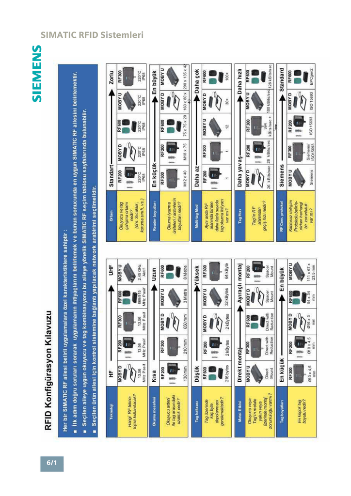 SIMATIC RFID Sistemleri 6/1 6/2 6/3 1 Aral›k 2011 / Fiyat Listesi SIMATIC RFID RF600 Sistemi Siparifl No Malzeme Cinsi Birim Fiyat› Euro/Adet SIMATIC RF600 SIMATIC RF600 RFID (RFID: Radio Frequency IDentification) sistemi, lojistik ve tedarik zinciri (supply chain management) uygulamalar› için özel olarak dizayn edilmifltir. SIMATIC RF600, UHF frekans band›nda çal›fl›r. EPC Global standart›ndaki etiketleri okuma ve yazma için kullan›labilir. Ekonomik çözüm sunan EPC (EPC: Electronic Product Code) kodu içeren ak›ll› etiketler için ideal bir sistemdir. SIMATIC RF600 RFID S‹STEM KOMPONENTLER‹ "SIMATIC RF670R UHF okuyucu OKUMA-YAZMA ÜN‹TES‹ RF670R ETSI UHF-FREKANSLARI AVRUPA ‹Ç‹N; ARAB‹R‹MLER: ETERNET, 4 ANTEN, 4 DIG. INPUT / 4 DIG. OUTPUT, 24 V DC; IP65, -25 ile +55 DGR/C; AKSESUAR YOK" Reader SIMATIC RF620R UHF okuyucu istasyon tipi, UHF 865 – 868 MHz frekanslar› için, RS422 arabirim (TIA uyumlu), entegre antene sahip, IP65, -25 ile +55 DGR/C Reader SIMATIC RF630R UHF okuyucu istasyon tipi, UHF 865 – 868 MHz frekanslar› için, RS422 arabirim (TIA uyumlu), Max. 2 anten tak›labilir, IP65, 25 ile +55 DGR/C, anten ve aksesuarlar hariç 6GT2811-0AB00-0AA0 2.540.- 6GT2811-5BA00-0AA0 2.552.- 6GT2811-4AA00-0AA0 2.320.- "SIMATIC RF620A Avrupa için Anten Linear polarized antenna, küçük boy UHF frekanslar› 865 – 868 MHz 75x75x20 mm" 6GT2812-1EA00 215.- "SIMATIC RF640A Avrupa için Anten Linear polarized antenna, orta boy UHF frekanslar› 865 – 868 MHz, 185x185x45 mm" 6GT2812-0GA08 238.- "SIMATIC RF642A Avrupa için Anten Circular polarized antenna, orta boy UHF frekanslar› 865 – 868 MHz, 185x185x45 mm" 6GT2812-1GA08 284.- "SIMATIC RF660A Avrupa için Anten Circular polarized antenna UHF frekanslar› 865 – 868 MHz" Anten Kablolar› "Anten kablolar› IP65, EU AND US VERSION PE, CMR/MPR" • Uzunluk 3 m, _ 5 mm u-certified • Uzunluk 5 m flex • Uzunluk 10 m 2DB, _ 5 mm u-certified • Uzunluk 10 m 4DB, _ 5 mm u-certified • Uzunluk 15 m flex • Uzunluk 20 m, _ 7,6 mm 6GT2 812-0AA00 367.- "DI/DO kablo SIMATIC RF600 RF670R ‹Ç‹N DI/DO KABLO; M12, 12 X 0.5 SQMM, SHIELDED, MATER‹AL PUR, IP67; UZUNLUK 5M" Güç Kayna¤› Girifl: 100 – 240 V AC, 120 – 353 V DC, Ç›k›fl: 24 V DC, 3 A, stable at no load, with continuous short-circuit protection • EU soket" "Güç kayna¤› kablo SIMATIC RF670R BA⁄LANTI KABLOSU 5M 6GT2898-0AA00, 6GT2898-0AA10, 6GT2898-0AA20 GÜÇ KAYNAKLARI ‹Ç‹N; MATERIAL PUR; IP65; NOT FOR SIMATIC RF660R ‹Ç‹N UYGUN DE⁄‹L" Anten montaj kiti Esnek montaj kolu VESA adapter 75 x 75 mm 6GT2 815-0BH30 6GT2 815-2BH50 6GT2 815-1BN10 6GT2 815-0BN10 6GT2 815-2BN15 6GT2815-0BN20 45.105.140.94.176.200.- 6GT2891-0CH50 138.- 6GT2 898-0AA00 378.- 6GT2891-0NH50 45.- 6GT2 890-0AA00 46.- Ürün Sorumlusu: Cengiz Ö¤er Tel: 0216 459 32 18 Faks: 0216 459 30 79 6 6/4 1 Aral›k 2011 / Fiyat Listesi SIMATIC RFID RF600 Sistemi Malzeme Cinsi SIMATIC RF600 KORUMA KAPAK SET‹ SIMATIC RF670R-Konnektörleri için 3X KAPAK ANTEN KONNEKTÖRÜ ‹Ç‹N, 1X KAPAK DI/DOBA⁄LANTISI ‹Ç‹N; METAL‹K CD RFID Sistemleri Yaz›l›m & Dökümantasyon CD SIMATIC RF660 Konfigürasyon Yaz›l›m, FB/FC for SIMATIC, 3964R driver, DOS/Windows 95/NT/2000/XP, C library, PC demo program, RFID Dökümantasyon" Siparifl No Birim Fiyat› Euro/Adet 6GT2898-4AA00 45.- 6GT2 080-2AA10 58.- RF600 Tag’ler SIMATIC RF620T Konteyn›r tag; ISO 18000-6C, EPC CLASS 1 GEN 2;96 BIT FREKANS: 868 MHZ; 915 MHZ, -25 'DEN +70 DGR/C 127 X 38 X 6 MM (L X W X H) MINIMUM siparifl miktar› 20 adet RF620T ‹Ç‹N TUTUCU 155 X 38 X 12 MM (LXWXH), MINIMUM siparifl miktar› 20 adet SIMATIC RF630L AKILLI ET‹KET 4" X 6"; KA⁄IT, EPC CLASS 1 GEN 2; ISO 18000-6C, FREKANS: 868 MHZ; 915 MHZ KA⁄IT VE KARTON ‹Ç‹N -40 'DEN +65 DGR/C MINIMUM Siparifl miktar› 1600 Adet Her bir roll için 800 adet SIMATIC RF630L AKILLI ET‹KET 4" X 2"; KA⁄IT, EPC CLASS 1 GEN 2; ISO 18000-6C, FREKANS: 868 MHZ; 915 MHZ KA⁄IT VE KARTON ‹Ç‹N -40 'DEN +65 DGR/C MINIMUM Siparifl miktar› 1.000 Adet Her bir roll için 1.000 adet SIMATIC RF630L AKILLI ET‹KET INLAY 97 X 27 MM;PET EPC CLASS 1 GEN 2; ISO 18000-6C FREKANS :868 MHZ; 915 MHZ KA⁄IT, KARTON VE PLAST‹K/FOIL için -40 'DEN +65 DGR/C MINIMUM Siparifl miktar› 2000 Adet, Bir roll 2000 adet SIMATIC RF630L SMARTLABEL INLAY 54 X 34 MM;PET EPC CLASS 1 GEN 2; ISO 18000-6C, 96 BIT EPC AND 512 BIT, ‹LAVE HAFIZA, FREKANS: 868 MHZ; 915 MHZ KA⁄IT, KARTON VE PLAST‹K/FOIL -40 TO +65 DEGR./C MINIMUM Siparifl miktar› 5000 Adet Bir roll 5000 adet SIMATIC RF630T SCREW-TAG; ACCORDING ISO 18000 6C; FREKANS 868 MHZ (EUROPE); 96 / 240 BIT EPC, ‹LAVE 512 BIT KULANICI HAFIZASI; -25 'DEN +85 DGR/C;IP 68/X9K; 21 X 21 MM (DXH) W/O THREAD; MINIMUM Siparifl miktar› 10 Adet SIMATIC RF640T GEN2 TOOL-TAG; ISO 18000 6C, FREKANS 868 MHZ (EUROPE); 96 BIT EPC, ‹LAVE 512 BIT KULLANICI HAFIZASI; -25 'DEN +85 DGR/C; IP 68;X9K 50 X 8 MM (DXH); MINIMUM Siparifl miktar› 10 Adet SIMATIC RF680T YÜKSEK SICAKLIK TRANSPONDER; ISO 18000-6C;EPC CLASS 1 GEN 2, 96 BIT;240BIT EPC, 64 BYTE KULLANICI HAFIZASI; FREKANS 868 MHZ AND 915MH, -25 'DEN +220 DGR/;IP 68IPX9K; 130 X 30 X 15 MM (LXWXH); Minimum siparifl miktar› 10 Adet 6 6/5 6GT2810-2HC80 5,68.- 6GT2898-2AA00 1,39.- 6GT2810-2AB00 0,79.- 6GT2810-2AB01 0,79.- 6GT2810-2AB02-0AX0 0,53.- 6GT2810-2AB03 0,48.- 6GT2810-2EC00 20,88.- 6GT2810-2DC00 20,88.- 6GT2810-2HG80 69,60.- Ürün Sorumlusu: Cengiz Ö¤er Tel: 0216 459 32 18 Faks: 0216 459 30 79 1 Aral›k 2011 / Fiyat Listesi SIMATIC RFID RF600 Sistemi Malzeme Cinsi Siparifl No Birim Fiyat› Euro/Adet "SIMATIC RF680L SMARTLABEL YÜKSEK SICAKLIKLARA DAYANIKLI 200 C (5 saat boyunca), ISO18000-6C; EPC CLASS 1 GEN 2, 96/240 BIT; 64 BYTE KULLANICI HAFIZASI;; FREKANS: 868 MHZ; 915 MHZ; 86 X 54 X 0.3 MM (L X W X H); Minimum siparifl miktar› 1000 Adet" 6GT2810-2AG80 1.14.- "SIMATIC RF610T ISO KART; ISO 18000-6C; FREQUENCY: 868