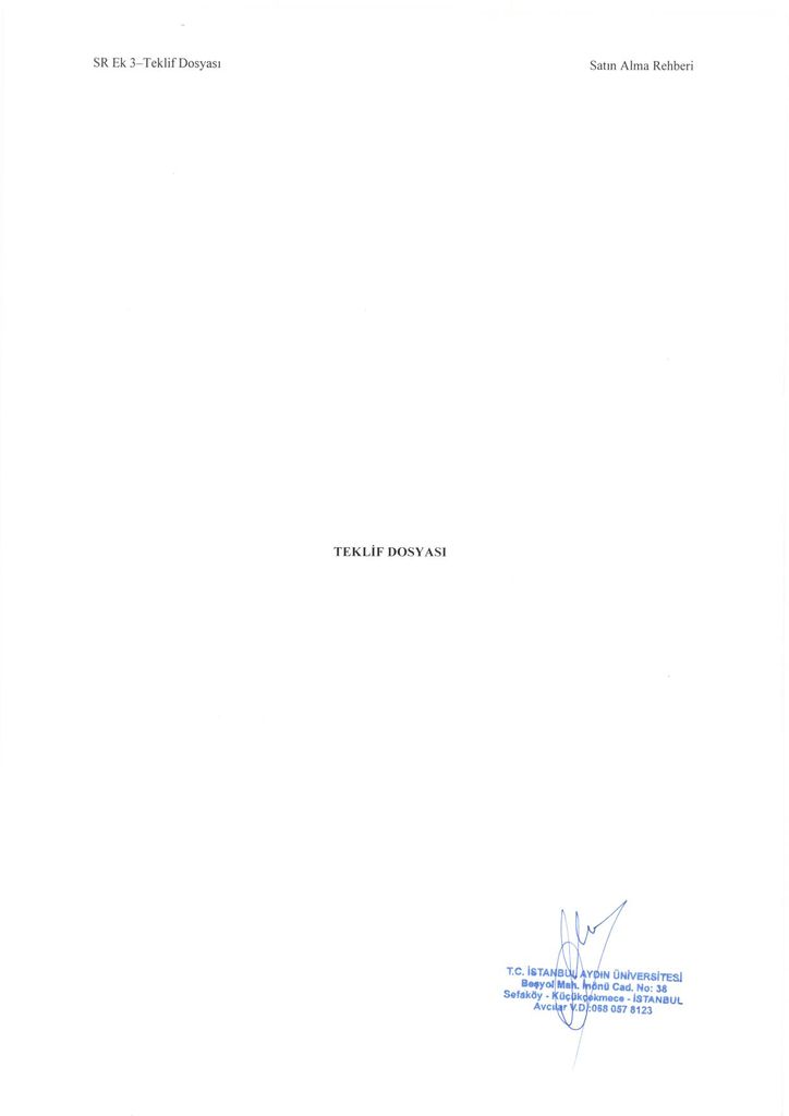SR Ek 3-Teklif Dosyası TEKLİF DOSYASI