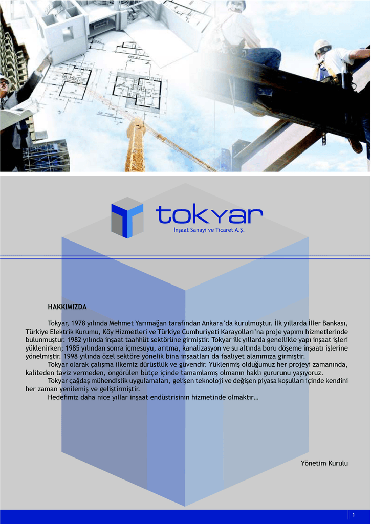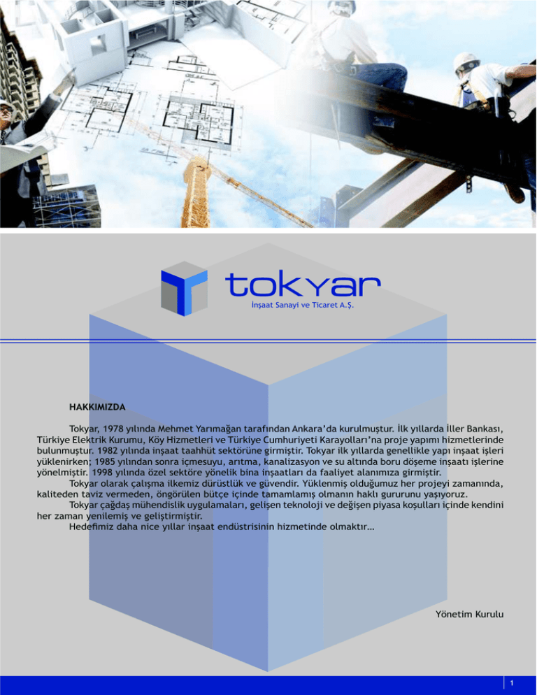 >/<&&5!U&/&%B!H2!"BS&'25!9=V= HAKKIMIZDA ! "#$%&'(!)*+,!%-.-/0&!123425!6&'-4&7&/!5&'&8-/0&/!9/$&'&:0&!$;';.4;<5;'=!>.$!%-..&'0&!>..2'!?&/$&@-(! "A'$B%2!C.2$5'B$!D;';4;(!DE%!FBG425.2'B!H2!"A'$B%2!I;43;'B%25B!D&'&%#..&'-:/&!J'#K2!%&J-4-!3BG425.2'B/02! L;.;/4;<5;'=!)*,M!%-.-/0&!B/<&&5!5&&33A5!@2$5E'A/2!NB'4B<5B'=!"#$%&'!B.$!%-..&'0&!N2/2..B$.2!%&J-!B/<&&5!B<.2'B! %A$.2/B'$2/O!)*,P!%-.-/0&/!@#/'&!BQ42@;%;(!&'-54&(!$&/&.BG&@%#/!H2!@;!&.5-/0&!L#';!0E<242!B/<&&5-!B<.2'B/2! %E/2.4B<5B'=!)**,!%-.-/0&!EG2.!@2$5E'2!%E/2.B$!LB/&!B/<&&5.&'-!0&!8&&.B%25!&.&/-4-G&!NB'4B<5B'= ! "#$%&'!#.&'&$!Q&.-<4&!B.$24BG!0A'[email protected]$!H2!NAH2/0B'=!6A$.2/4B<!#.0;7;4;G!32'!J'#K2%B!G&4&/-/0&(! $&.B5202/!5&HBG!H2'4202/(!E/NE'A.2/!LA5Q2!BQB/02!5&4&4.&4-<!#.4&/-/!3&$.-!N;';';/;!%&<-%#';G= ! "#$%&'!Q&70&<!4A32/[email protected]$!;%N;.&4&.&'-(!N2.B<2/!52$/#.#KB!H2!027B<2/!JB%&@&!$#<;..&'-!BQB/02!$2/0B/B! 32'!G&4&/!%2/B.24B<!H2!N2.B<5B'4B<5B'=! ! F202R4BG!0&3&!/BS2!%-..&'!B/<&&5!2/0A@5'B@B/B/!3BG425B/02!#.4&$5-'T 6E/25B4!D;';.; 1 SERVICES PUBLIC PROJECTS CONSULTING Tokyar is in the service of the construction industry as a consultant with over 25 years of engineering experience. We offer optimal solutions to all kinds of hydraulics problems. Our services include design development and engineering, and also complete economical analysis, market research, systems analysis, all necessary in-situ and laboratory tests, scheduling, simulation and logistic planning as well. We have a strong network with the academicians specialized in the area in case project requires advanced research or model development. Tokyar’s civil engineering team consists of fresh and senior engineers that have the ability to combine most up-to-date engineering practices with experience. Our project management team collaborates with our engineers during design process and makes valuable schedule, cost and constructability input; this gives us the edge to oversee and prevent problems that may occur during construction as a result of wrong design decisions. Tokyar has served as a designer/consultant for over 100 fresh/waste water projects all around Turkey. GENERAL CONTRACTOR Tokyar has been serving the public sector since 1983 as a general contractor. We have been a pioneer company in water supply/disposal projects as we combined our design experience and know-how with application engineering and effective management. Tokyar employs superintendents and project managers some of whom have over 20 years of experience in civil type of jobs. On the contrary to the common practice in the public sector, we have never undertook a project !"#!$%&'()*$+,$!&$,#('-.()$/+#0-!1$%&'$!")$,#2)$&%$3'&.!#4-0-!15$6&21#'$"#,$7)8)'$9&7)$4#(2$!&$!")$:&4$,-!)$ #%!)'$.7#0$(&;30)!-&7$-7$&'*)'$!&$.<$#$3'&40);$*+)$!&$3&&'$(&7,!'+(!-&75$=)$!#2)$9')#!$3'-*)$-7$!")$%#(!$ that we have neither run overdue on a project nor left a project uncompleted. We have built some 4,000 km’s of pipeline in various diameters and built all related structures to those lines, which include distribution reservoirs, elevated water tanks, water captivating structures, pump stations, water treatment facilities etc. Moreover, we are one of the few companies in Turkey with underwater pipe laying experience, equipment and technology. The water supply lines we have built underwater now serve the inhabitants of the islands surrounding Turkish mainland and the underwater discharge lines help keep our sea costs clean. =)$"#8)$()'!-.(#!)$&%$(&;30)!-&7,$%&'$8#'-&+,$3'&:)(!$,(&3),$!"#!$;#2),$+,$)0-9-40)$!&$4-*$;&,!$ of the jobs in Turkey. M >/<&&5!U&/&%B!H2!"BS&'25!9=V= I#/@5';S5B#/!_/0;@5'%!&/0!"'&0B/N!I#'J= !"#$%&'%("$"# )*$+,-(./%'%(" , $01*2"('") , &#$%&'(!MP!%-.-!&<$-/!4A32/[email protected]$!02/2%B4B!B.2!B/<&&5!@2$5E'A/02!4A<&HB'.B$!3BG425B!H2'42$520B'=! "#$%&'! #.&'&$! 32'! 5A'.A! 3B0'#.B$! J'#L.24B/2! #J5B4;4! QEGA4.2'B! @;/4&$5&%-G=! "&@&'-4! N2.B<5B'42! H2! 4A32/[email protected]/! %&/-! @-'&! 2$#/#4B$! &/&.BG(! J&G&'! &'&<5-'4&@-(! @B@524! &/&.BGB(! 5A4! @&3&! H2! .&L#'&5;H&'! [email protected]'B(!B<!J'#N'&4-(!@B4;.&@%#/!H2!.#KB@5B$!J.&/.&4&!0&!@&7.&0-7-4-G!3BG425.2'B/!&'&@-/0&!%2'!&.4&$5&0-'=! W'#K2/B/(! 4#02.! #.;<5;'4&! H2%&! &'&<5-'4&X! N2.B<5B'42! N2'2$5B'0B7B! 0;';4.&'! BQB/! &.&/-/0&! ;G4&/.&<4-<!! &$&024B@%2/.2'.2!%&$-/!L&7.&'-4-G!42HS;55;'= ! C$BLB4BGB/! LB'! $-@4-! N2/Q! 4A32/[email protected]'02/! LB'! $-@4-! 52S'AL2.B! 4A32/[email protected]'02/! #.;<4&$5&0-'O! LE%.2S2! 2/! %2/B! 4A32/[email protected]$! ;%N;.&4&.&'-! B.2! 02/2%B4B! LB'.2<5B'2'2$! @;/4&$5&%-G=! "&@&'-4! &<&4&@-/0&! 4A32/[email protected]'B4BG.2!@A'2$.B!B'5BL&5!3&.B/02!#.&/!J'#K2!%E/25B4B!2$BLB4BGB/!@&7.&0-7-!J.&/.&4&(!4&.B%25!H2! B/<&!20B.2LB.B'.B$!H2'B.2'B!@&%2@B/02!%&J-4!&<&4&@-/0&!%&/.-<!5&@&'-4!$&'&'.&'-!%AGA/02/!#'5&%&!S-$&LB.2S2$! @#';/.&'-!E/NE'2'2$!2/N2..242$52%BG=!"#$%&'!%;'5!N2/2.B/02!)YY:A/!AG2'B/02!@;!524B/BX&5-$!@;!J'#K2@B/B/! 5&@&'-4X4A<&HB'.B7B/B!%&J4-<5-'= , $0&%*!!"&'") "#$%&'(!)*,M:02/!L2'B!4A52&33B5!#.&'&$!$&4;!@2$5E'A/2!3BG425!H2'42$520B'=!"&@&'-4!52S'AL24BG! H2!LB.NB!LB'$B4B4BGB!5&5LB$&5!H2!282$5B8!%E/25B4!&/.&%-<-4-G.&!LB'.2<5B'424BG!@&%2@B/02!@;!524B/BX&5-$!@;! J'#K2.2'B/02!E/SA!LB'!R'4&!#.&'&$!%2'!&.4&$5&%-G=!"#$%&':-/!2$BLB/02!LB'!$-@4-!MY!%-.-!&<$-/!02/2%B42!@&3BJ! <&/5B%2!<2Z2'B!H2!52$/B$2'.2'!%2'!&.4&$5&0-'= ! D&4;! @2$5E'A/02$B! %&%N-/! ;%N;.&4&%&! $&'<-/(! 3BQLB'! G&4&/! $&'.-.-$! ;7';/&! $&.B52/B/! G&'&'! NE'2LB.2S27B! LB'! J'#K2%B! [email protected]/420B$=! "#$%&'(! $2@B/! $&L;.! @#/'&@-! $E5A! B4&.&5! 0#.&%-@-! B.2! 3BQLB'! G&4&/! N2'B%2!0E/42$!G#';/0&!$&.4&4-<5-'=!"#$%&'!#.&'&$!L;NA/2!$&0&'!3BQLB'!J'#K2%B!N2SB$5B'424B<!H2%&!%&'-4! L-'&$4&4-<!#.4&/-/!N;';';/;!%&<-%#';G=! ! [2<B5.B!Q&J.&'0&!\(YYY!$4!AG2'B/02!L#';!3&55-!0E<20B$!H2!L;!3&5.&'.&!B.NB.B!LB'Q#$!@&/&5!%&J-%-!B/<&! 255B$=!]U2'HB@!02J#.&'-(!&%&$.-!02J#.&'(!$&J5&K(!$2@#/!$;%;(!52'R!B@5&@%#/.&'B(!&'-54&!52@[email protected]'B^! 9%'-S&(! @;! &.5-! L#';! 0E<242! $#/;@;/0&! "A'$B%2:02! LB.NB(! 2$BJ4&/! H2! 02/2%B4B! #.&/! 2/02'! R'4&.&'