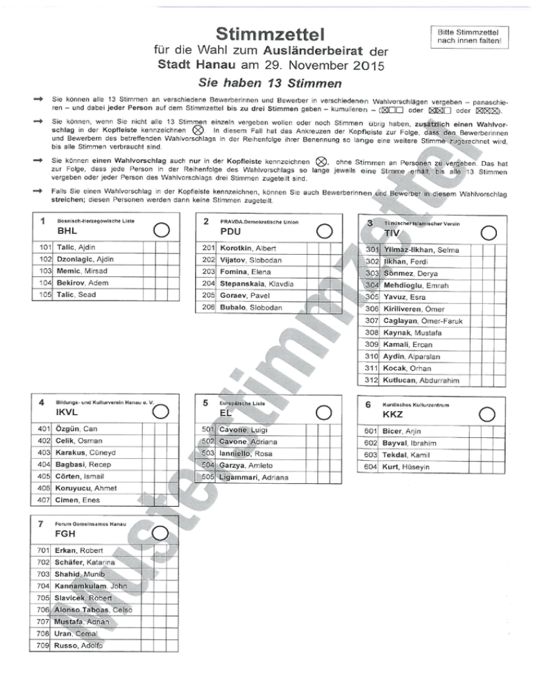 Stimmzettel - Arbeitsgemeinschaft der Ausländerbeiräte in Hessen