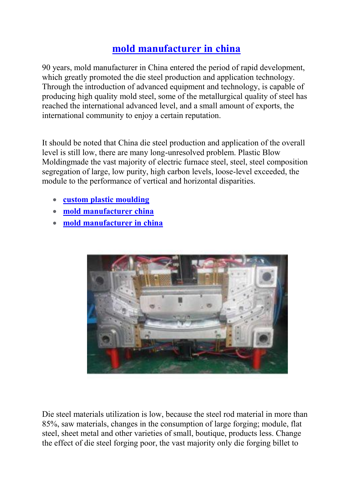 mold manufacturer in china 90 years, mold manufacturer in China entered the period of rapid development, which greatly promoted the die steel production and application technology. Through the introduction of advanced equipment and technology, is capable of producing high quality mold steel, some of the metallurgical quality of steel has reached the international advanced level, and a small amount of exports, the international community to enjoy a certain reputation. It should be noted that China die steel production and application of the overall level is still low, there are many long-unresolved problem. Plastic Blow Moldingmade the vast majority of electric furnace steel, steel, steel composition segregation of large, low purity, high carbon levels, loose-level exceeded, the module to the performance of vertical and horizontal disparities. custom plastic moulding mold manufacturer china mold manufacturer in china Die steel materials utilization is low, because the steel rod material in more than 85%, saw materials, changes in the consumption of large forging; module, flat steel, sheet metal and other varieties of small, boutique, products less. Change the effect of die steel forging poor, the vast majority only die forging billet to change shape, size, purpose, ignoring organizational improvement model that remains blank in the other carbides and negative super streamline distribution. Die material selection and application of improper heat treatment of steel in the mold is a prominent problem. Custom Mold Design, makers not familiar with the material and heat treatment, heat treatment technology personnel are not familiar with the working conditions of the mold, or heat treatment process often does not result in material selection and die match. For more information…. https://www.hao-mold.com/ In addition, the implementation of strict heat treatment, heat treatment equipment and technology behind the mold caused by improper operation of deformation, cracking, is universal. Survey showed that the mold material selection and heat treatment due to early failure caused by improper accounted for about 70%. Surface treatment in the Die Casting Mold Design of the application, in addition to carburizing, nitriding, other diffusion processing (infiltration non-metallic, alloying) rarely used, less coating and spraying applications. Some applications also often due to inappropriate choice of species and processes, achieving the desired effects, and even not only useless but harmful, mold steel application technology to become a weak link. Hao-mold.com is a mold manufacturer in China with complete injection mould&moulding manufacturing facilities. We make plastic moulds and tooling for plastic molded parts& any custom plastic moulding. Our services include mold design, mold making, Injection Molding and Assembly. The industries we serve include automotive, consumer electronic,and Industrial products, Cosmetics & Personal Care Products, medical and manufacturers of small and major appliances. Hao mold has an excellent team for mold designing, engineering and mold manufacturing. "Honesty and responsibility" is always considered as our faith and customers' satisfaction is the best measurement standard as our quality principle.